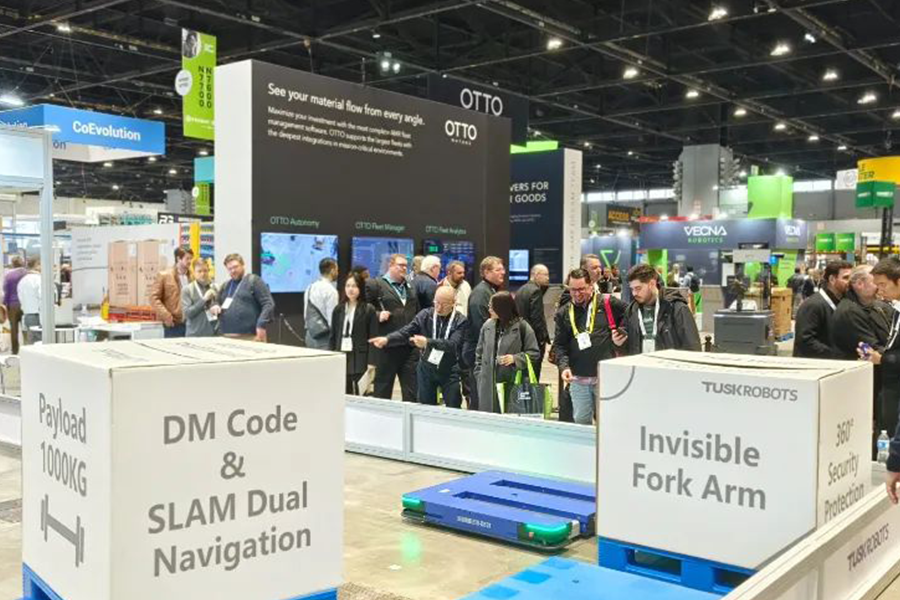 美國(guó)當(dāng)?shù)貢r(shí)間 3 月 20 日,兩年一屆的美國(guó)芝加哥國(guó)際搬運(yùn)與物流技術(shù)展覽會(huì) PROMAT 2023 在芝加哥邁考密會(huì)展中心盛大啟幕。作為全美最大的物料搬運(yùn)、物流設(shè)備、系統(tǒng)和技術(shù)展覽活動(dòng),PROMAT物流展影響力輻射南北美乃至歐洲地區(qū),吸引全球多個(gè)國(guó)家和地區(qū)數(shù)千家知名企業(yè)參展。大會(huì)現(xiàn)場(chǎng),塔斯克機(jī)器人首次盛裝亮相,獨(dú)具創(chuàng)新性的APR托盤機(jī)器人吸引眾多國(guó)外觀眾、媒體及行業(yè)專家駐足交流,引起廣泛的關(guān)注。